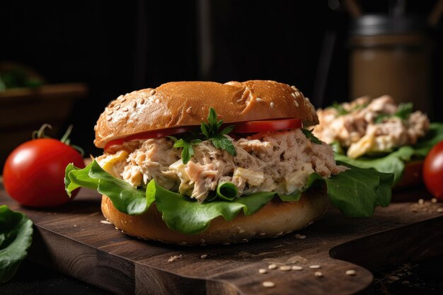 4) espalhe a mistura de atum sobre a metade inferior de cada bagel e cubra com fatias de tomate, rodelas de cebola e folhas de alface.