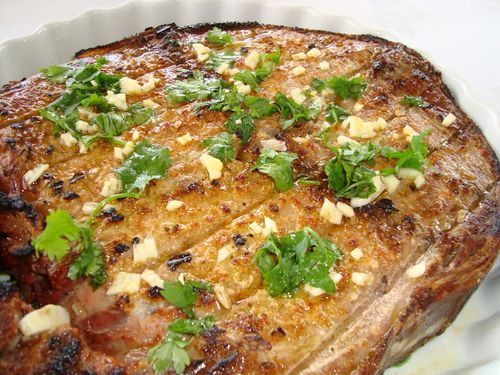 4) envolva, deixe marinar por 120 minutos e descarte o alho.