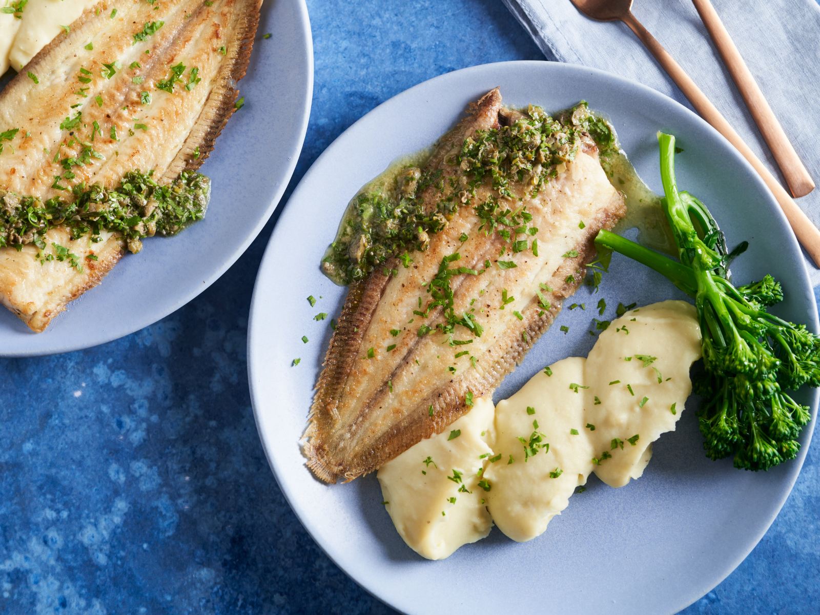 Linguado au meunière com puré de batata