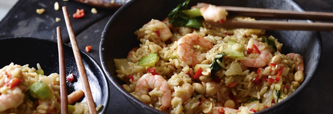 Stir-fried rice de camarão